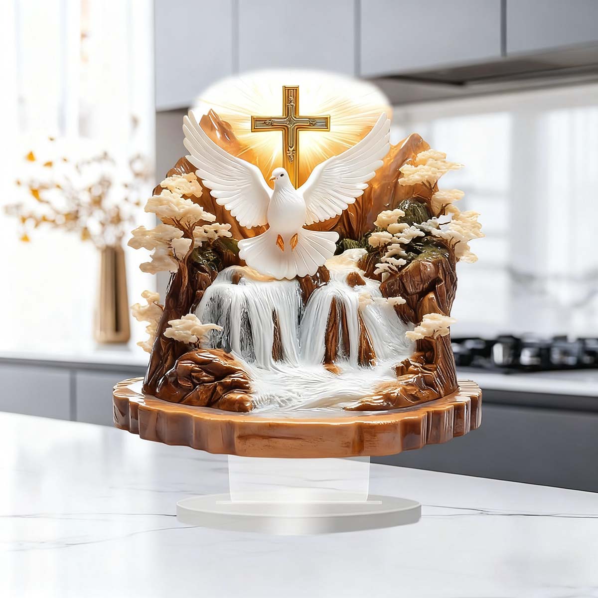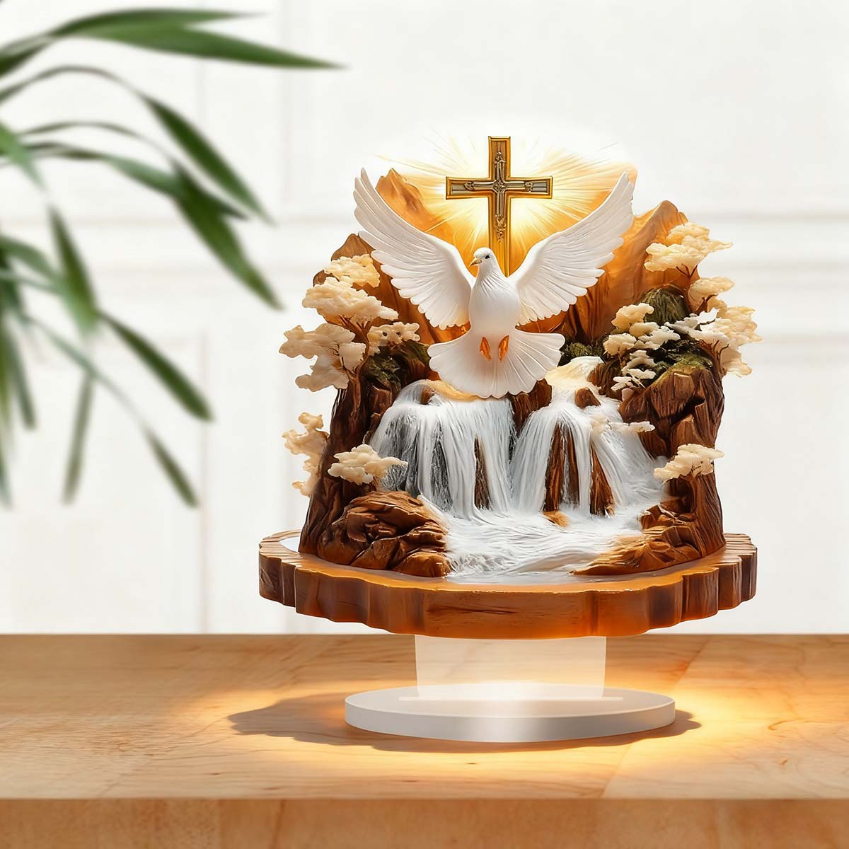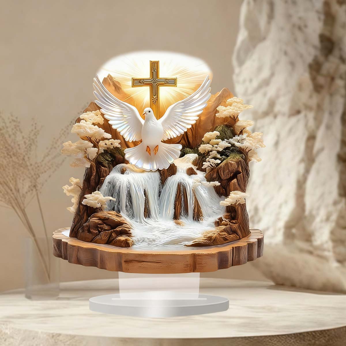 Adorno Boho Moderno para Escritorio - Decoración Acrílica con Paloma de la Paz y Paisaje Natural