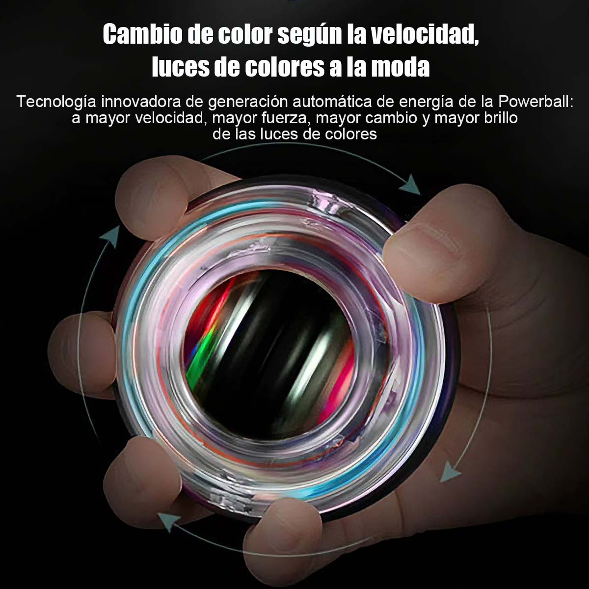 Bola de ejercicio para muñeca, 100 kg, 200 rpm, apta para fitness y alivio de estrés. Autoinicio, luces LED, operación silenciosa. Entrena fuerza de muñeca, antebrazo y agarre en cualquier lugar.
