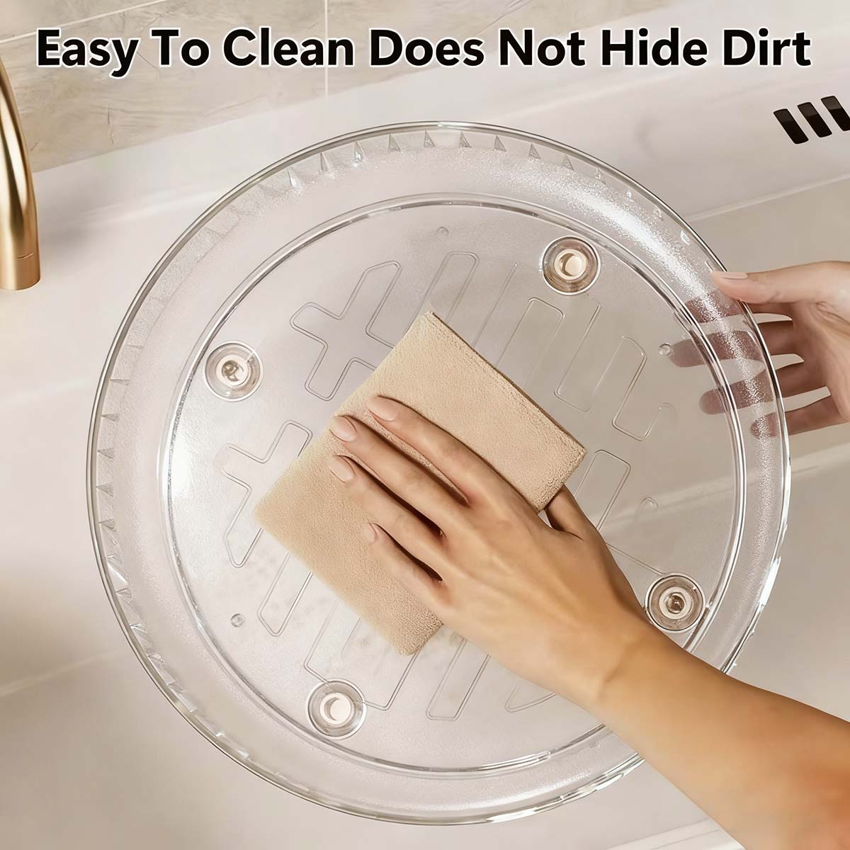 Elegante estante giratorio de almacenamiento, plato giratorio transparente para cocina, soporte de especias y salsas, organizador de almacenamiento para mesa de cocina y sala.