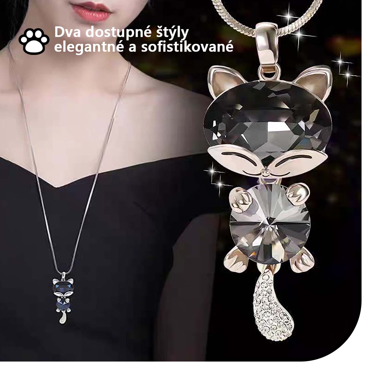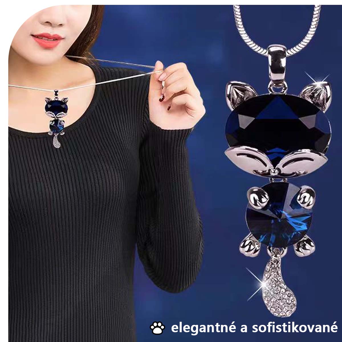 Kórejský univerzálny dlhý náhrdelník, elegantný dámsky jednoduchý a módny prívesok mačičky s kryštálom, sveterový náhrdelník a módny doplnok.