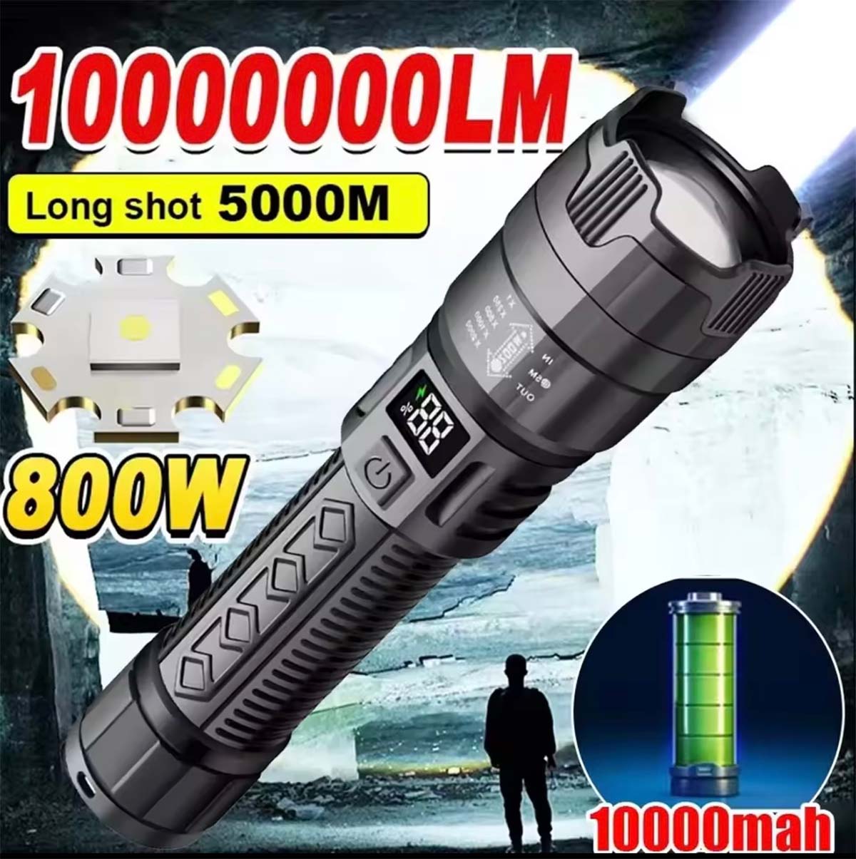 “Linterna de alta potencia recargable, portátil, de larga duración, para exteriores, de alcance lejano, resistente al agua, multifuncional y súper brillante para uso doméstico.”