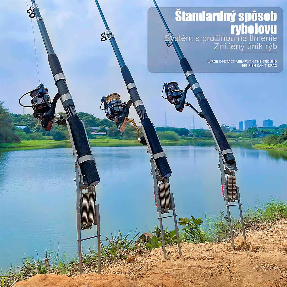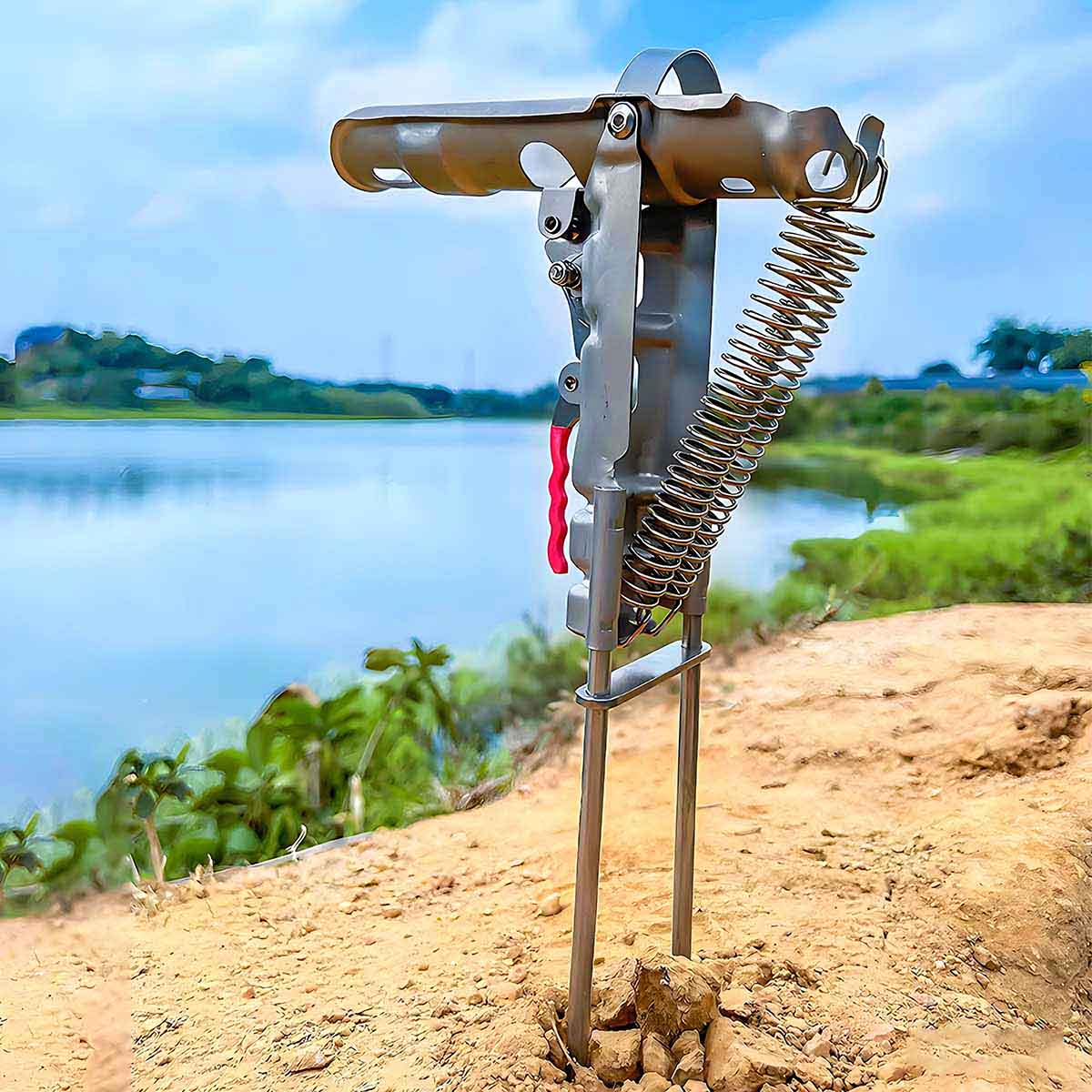 S zemným stojanom je tento prút vhodný pre rôzne vonkajšie rybárske prostredia, či už na pláži, pri rieke alebo jazere. Stojan pevne drží prút, čím sa zabráni nakloneniu alebo kolísaniu spôsobenému vetrom alebo voľnou pôdou, čím zaručí stabilný a pohodlný rybársky zážitok.